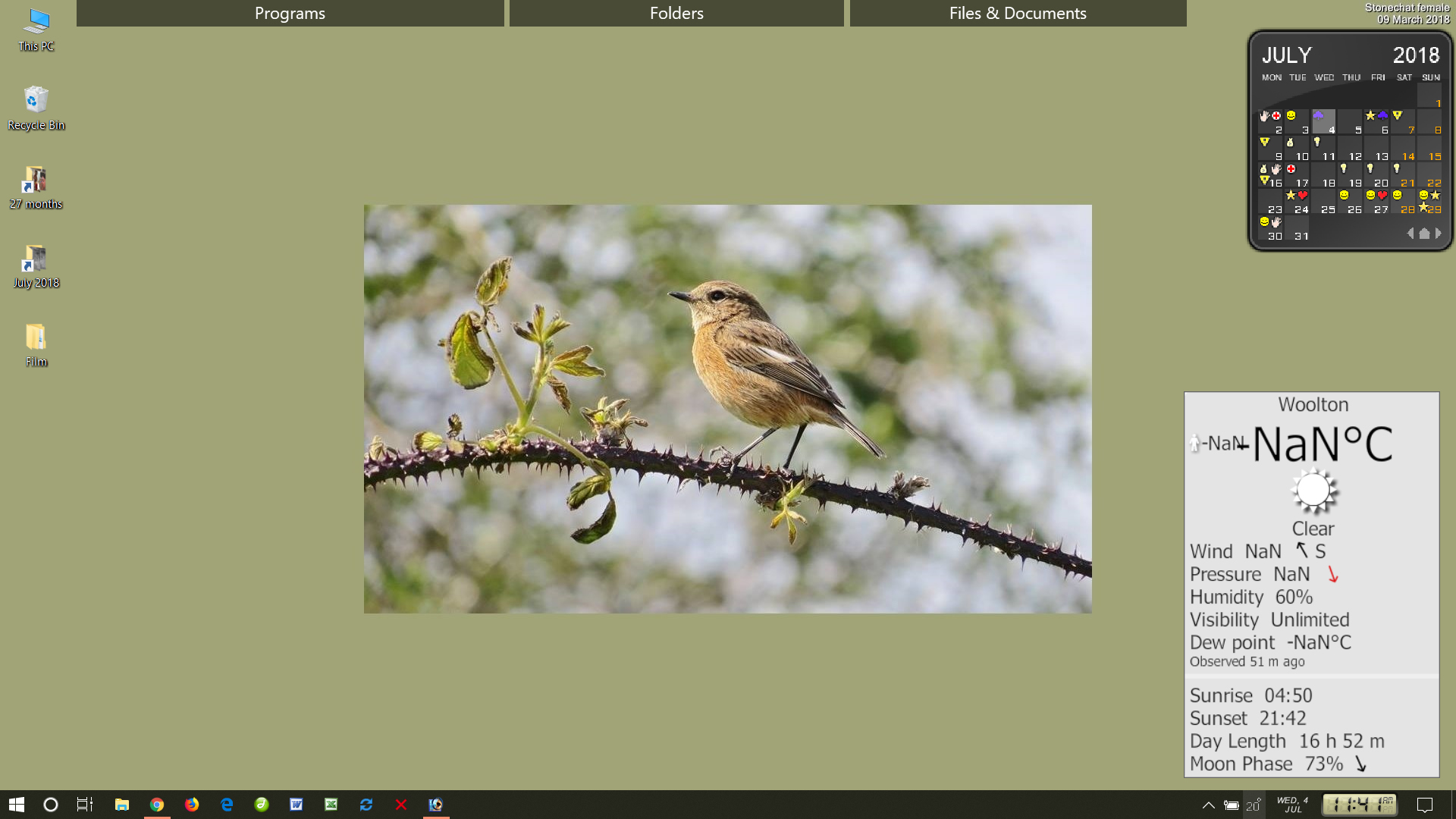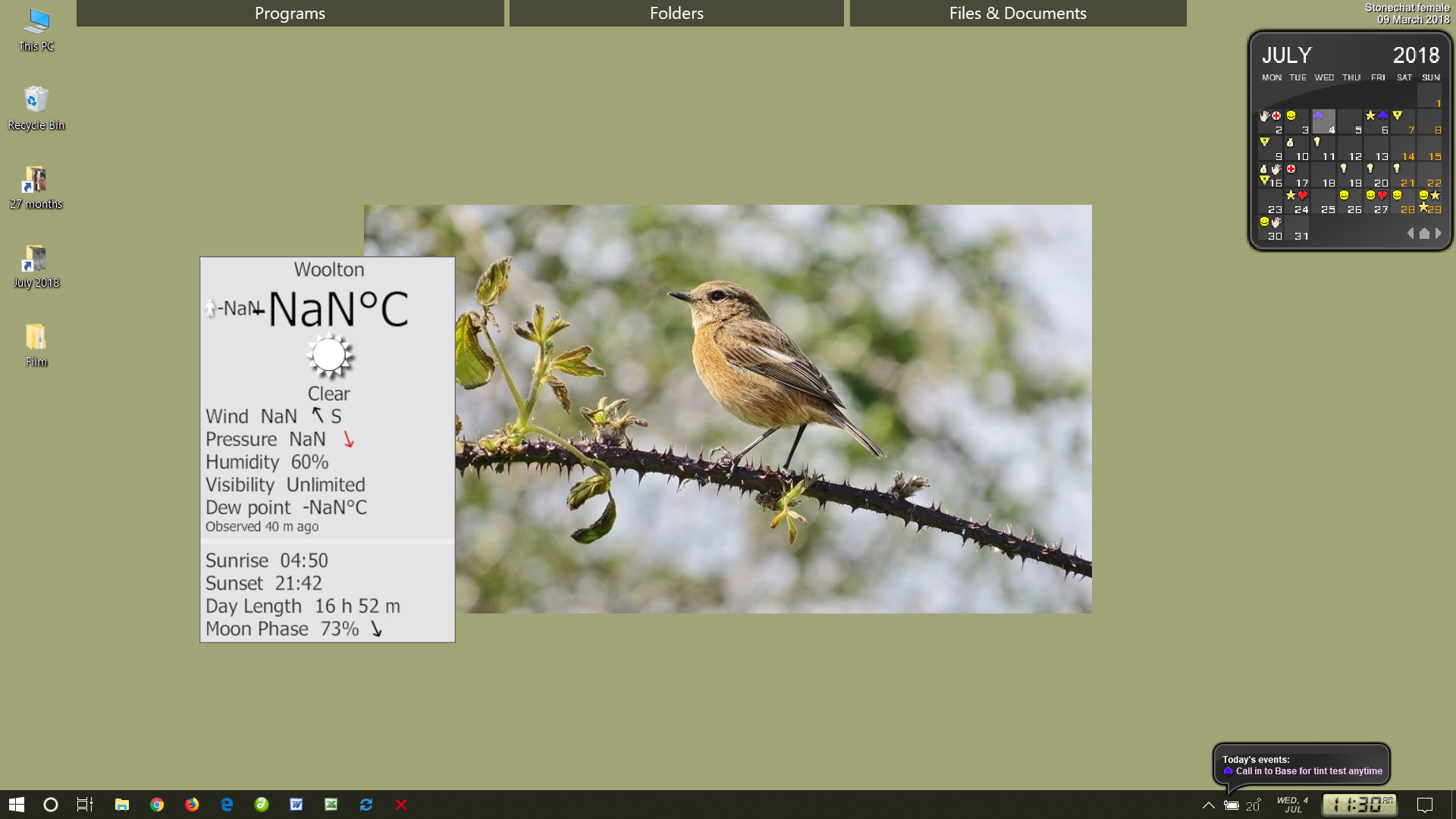 I have YoWindow Pro on my laptop and my Desktop. Both machines run the latest version of window10. When I startup both computers I always get a strange display. It does not show the set city but always uses the word Nan or -Nan as does the Wind, Pressure and Dew Point. The same shows if I hover over the temperature in the task bar. I have attached 2 screengrabs to show what I mean.