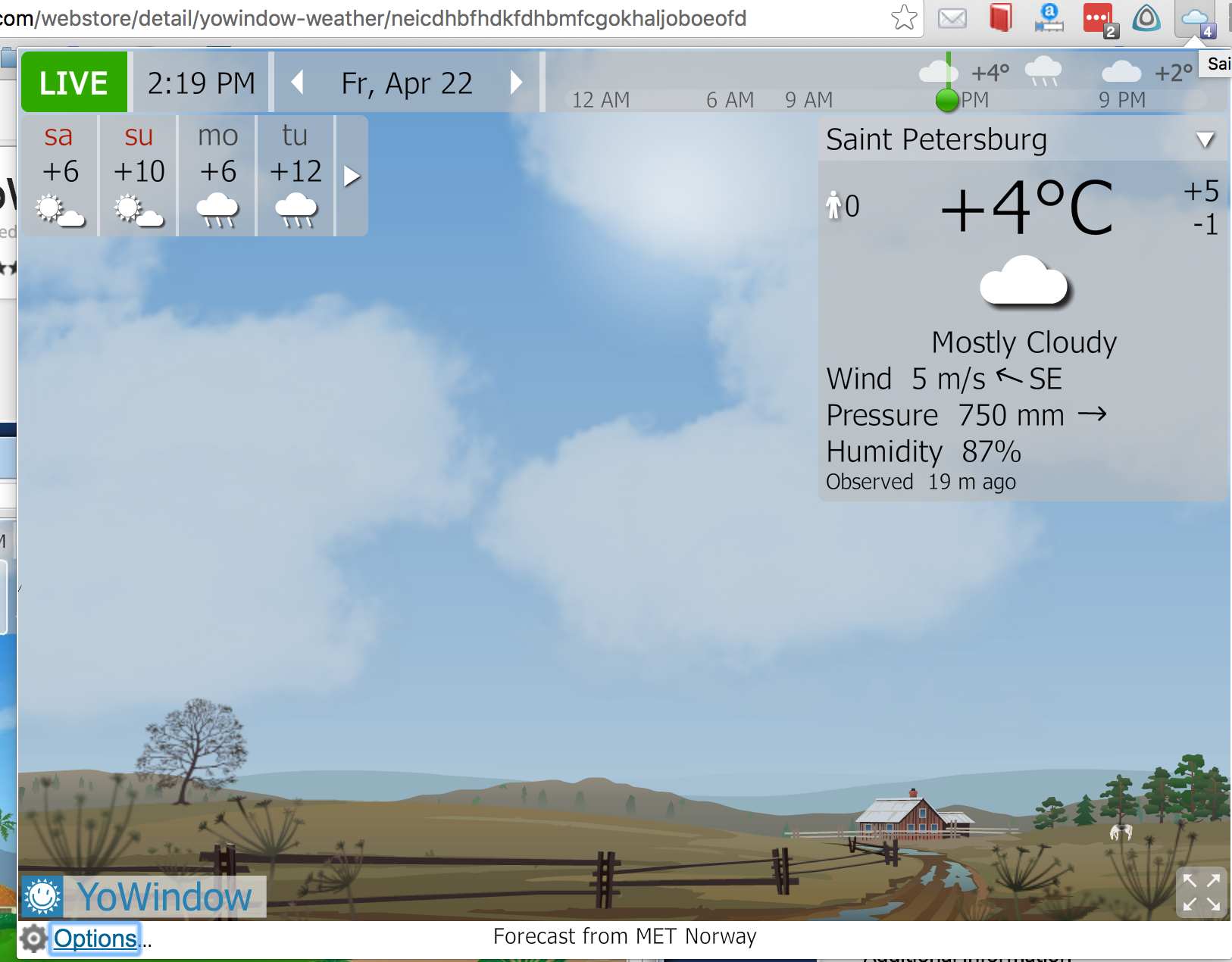 The ads are now gone. However, there's no weather showing up, and when I click the "refresh" icon, nothing happens. I've done all the usual things to troubleshoot: cleared cache, restarted browser, uninstalled and reinstalled the extension.