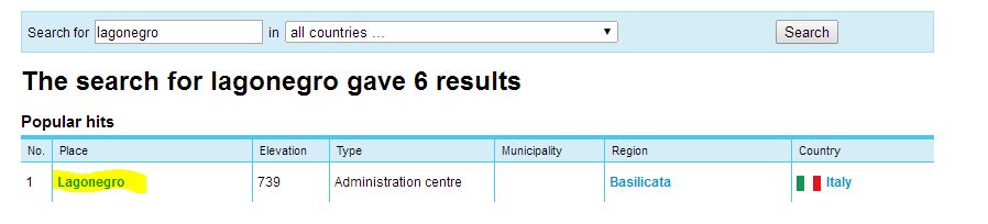 You will be at a search page with a list of locations with Lagonegro in the name.