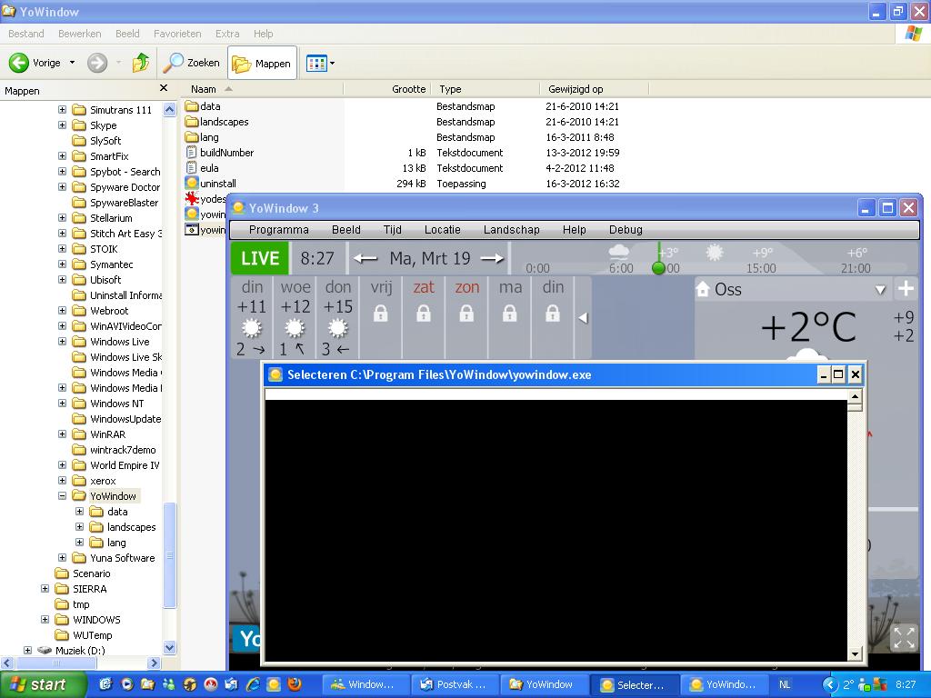 When I close YoWindow it minimizes to the taskbar, but when I hoover over it with my mouse, YoWindow closes, very strange... (I opened YoWindow with the debug-program).