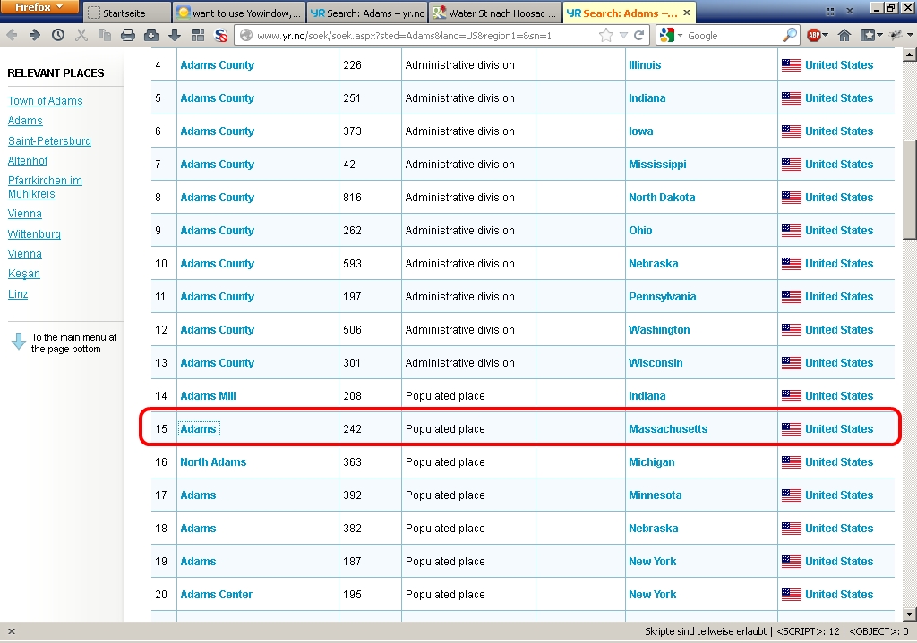 But if you want Adams, MA then you don't have to scroll to page 5 to find a location "Adams" in MA.