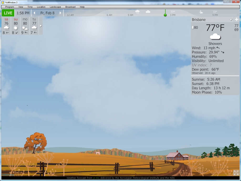 Sometimes there is a pink hue on the landscape (notice Millie and the roof) even though the sun is high in the sky. This happens with all animated landscapes, but as far as I can tell does not effect picture landscapes. It seems to happen when the cloud conditions are similar to what is shown in the photo below.