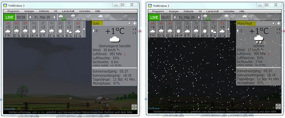 Hier 2 screens, die mit einer Minute Abstand entstanden sind: