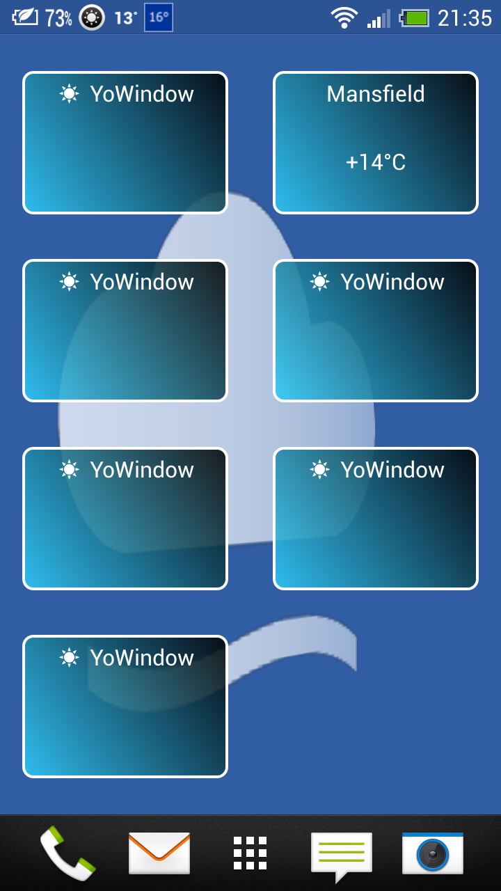 So, I was bored and decided to use my normal home instead of the fb home...I experimented with the yowindow alpha and came up with these results: