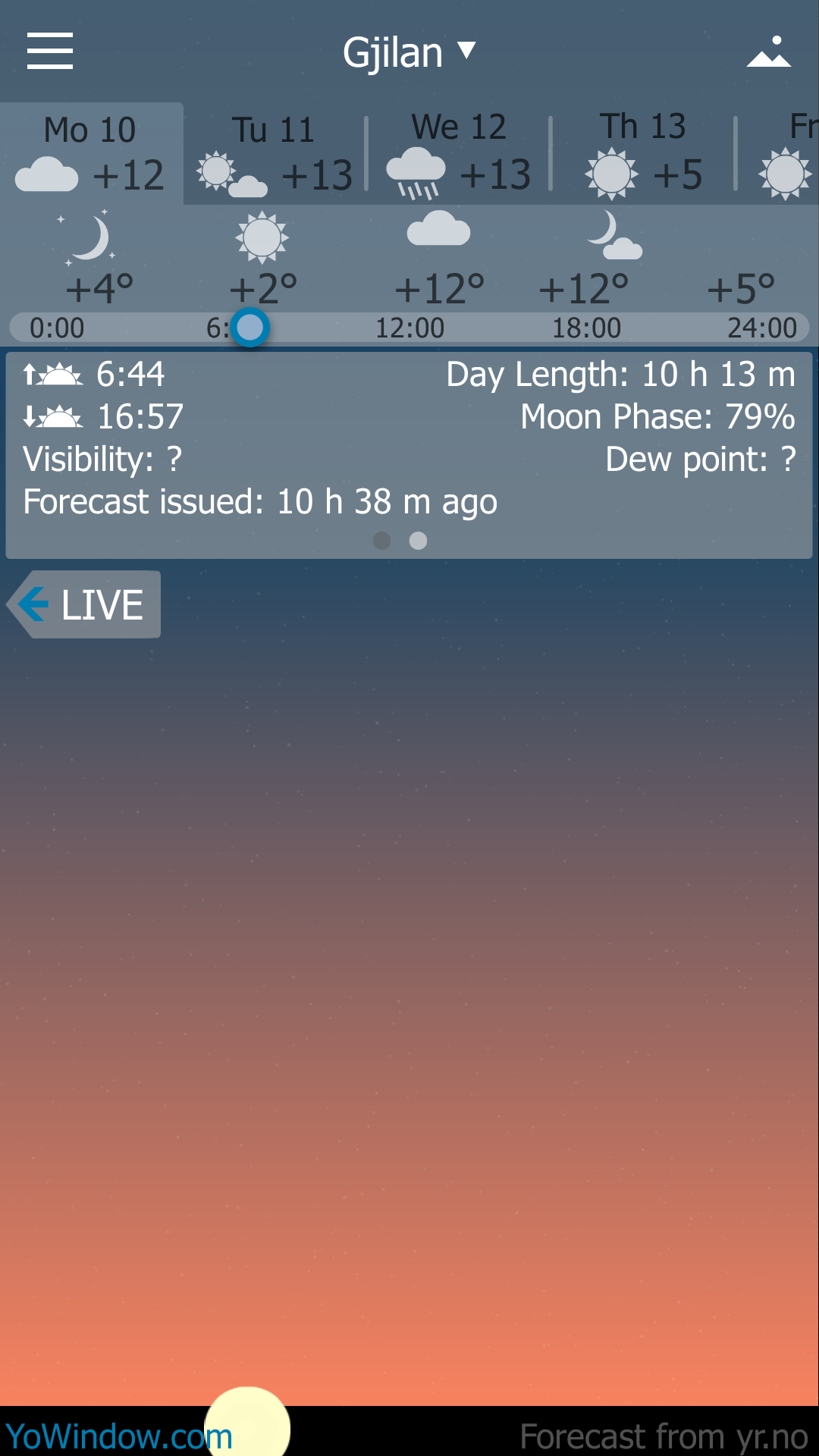 5) If no network connection, Yowindow displays as no weather. Request to change settings to show the last updated weather, till next update.