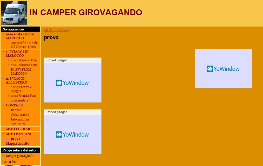 Ho creato sito con Google Sites che parla del Marocco e volevo inserire il meteo delle varie città, visto che YoWindow è ECCEZIONALE.