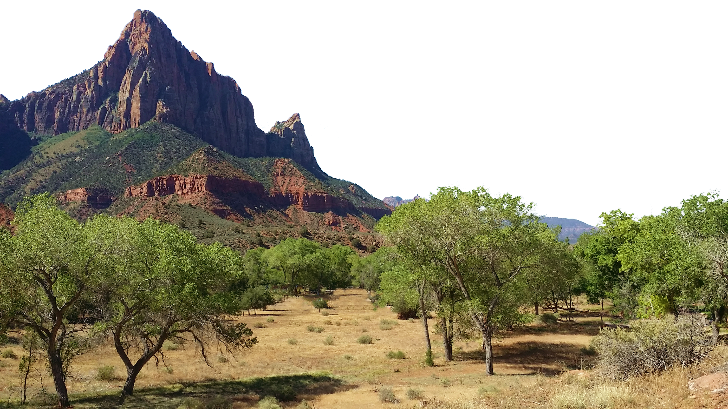 This is Zion National Park looking toward the iconic Watchman Mt as if you were standing near South Campground.