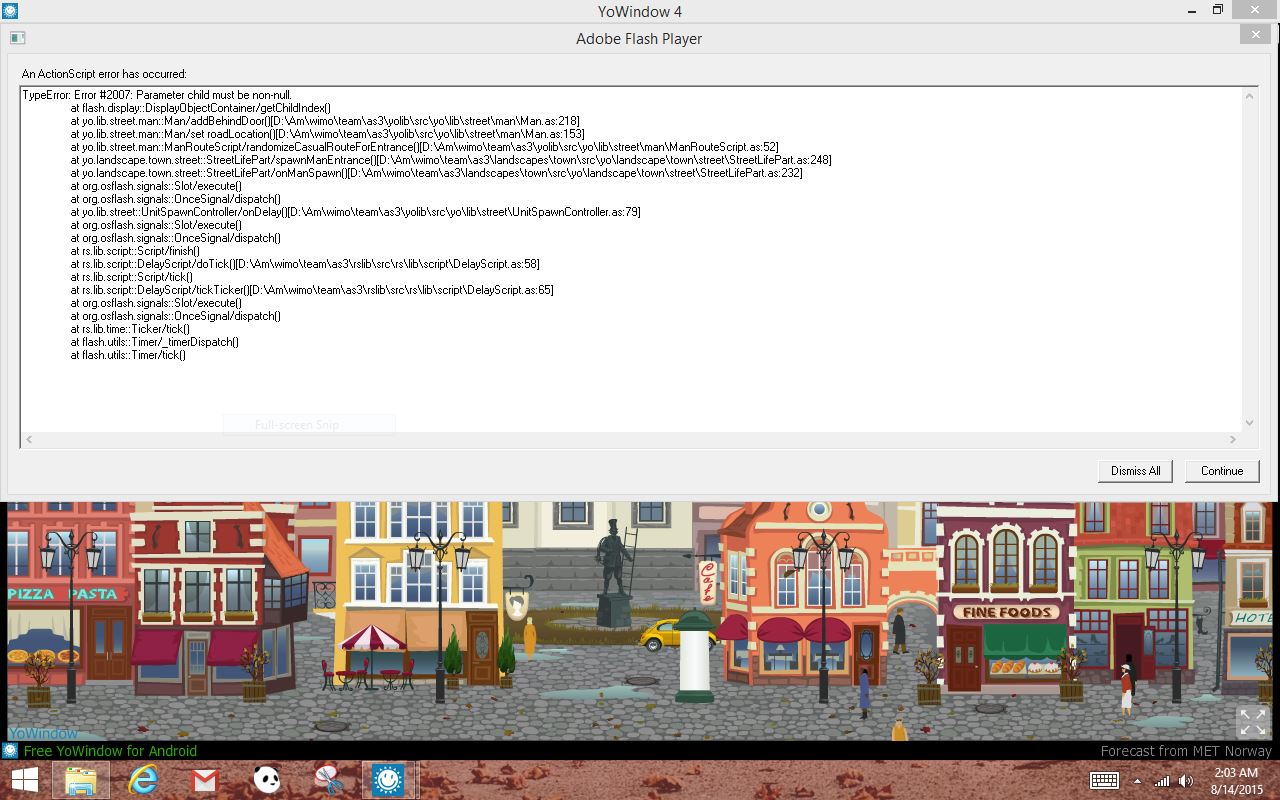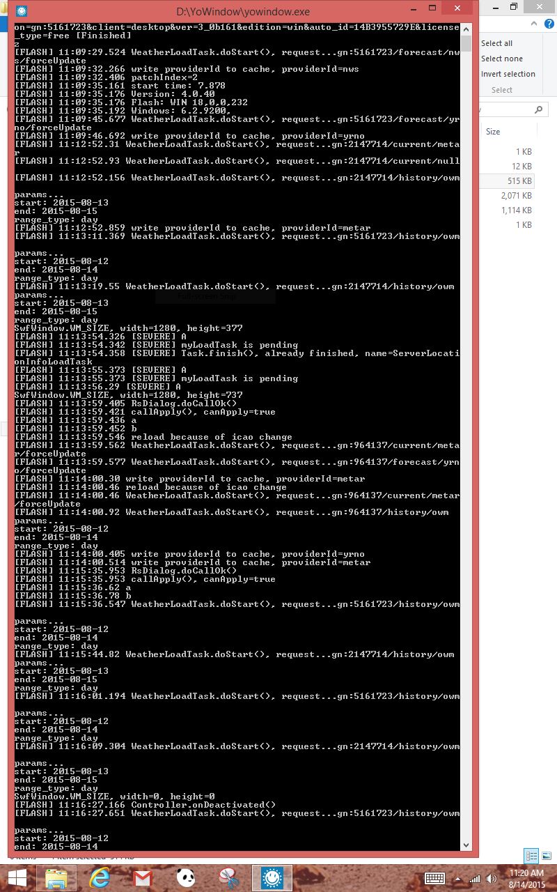 Try running YoWindow in debug mode.