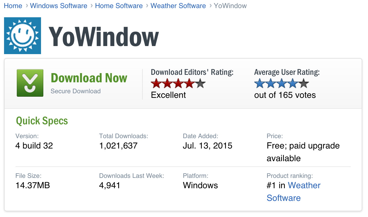 YoWindow has been downloaded 1,000,000 times on download.com. Wow!