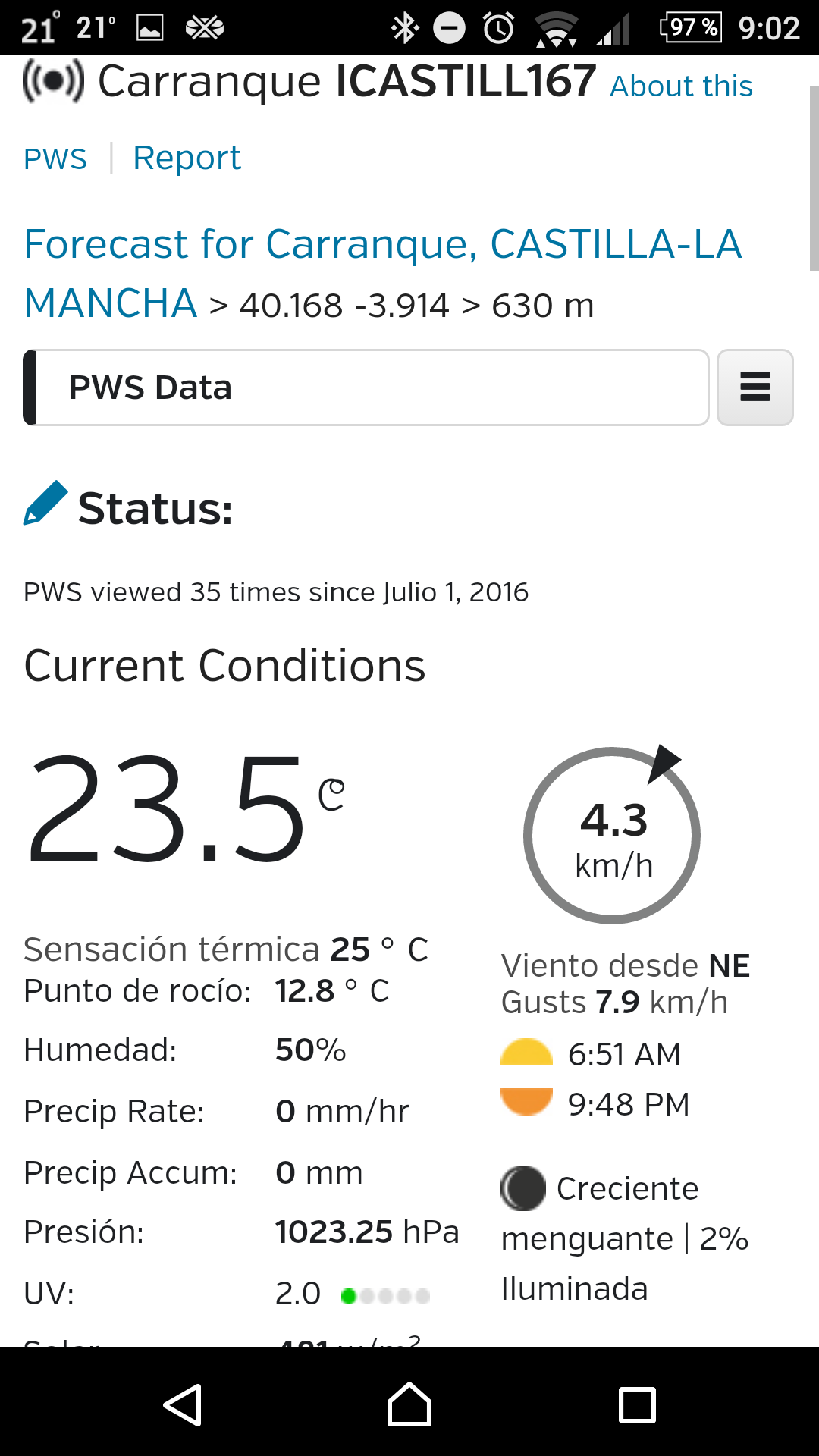 I connected a weather station in the town of Carranque (Spain), Weather undergroun if the weather station appears, but I no window, the station is ICASTILL167