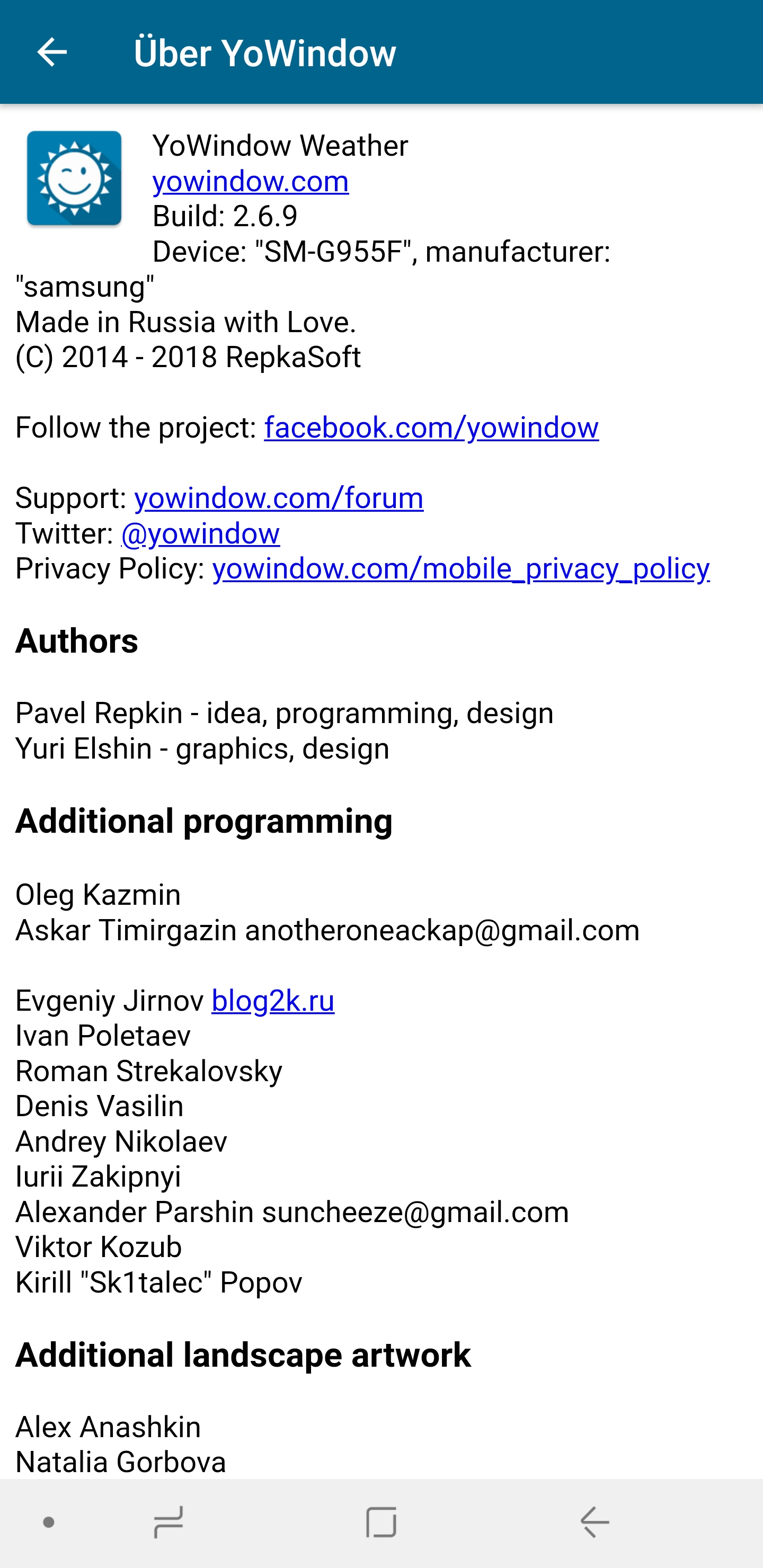 Please post a screenshot, the device modelband the version of YoWindow you are using