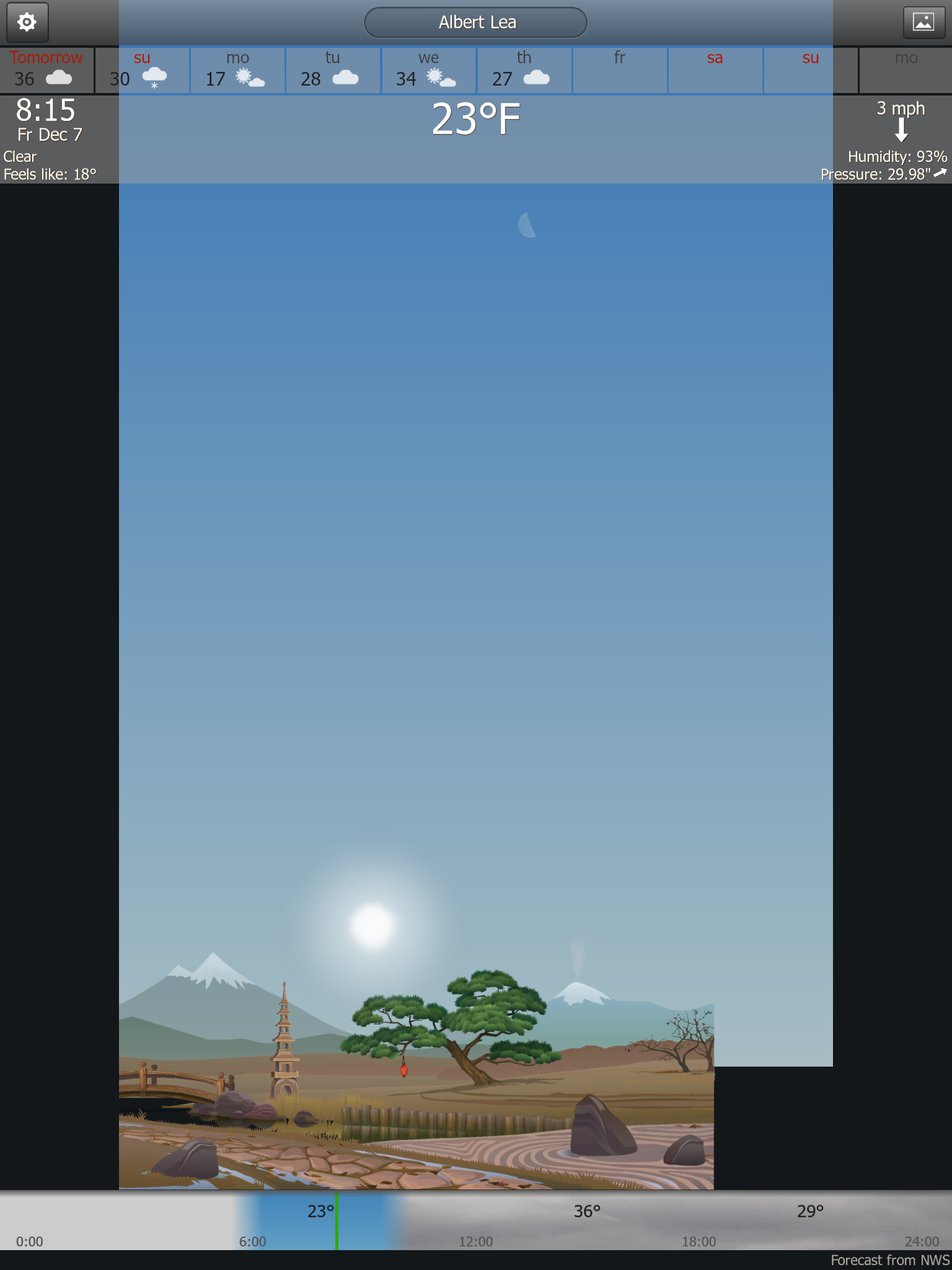The update to the app allows for the changing of the backgrounds! Much better than looking at the gloomy sky (raining here today, not complaining we really are lacking in that department this year).