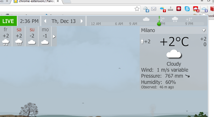 Hello, the icon in my Chrome browser does not seem to update properly, it displays a bright sun even at night. How can I fix that?