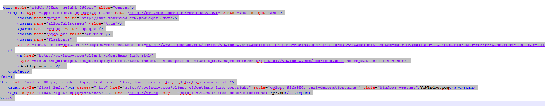 I have trouble with picture and PWS to show in my script. Now i have erase some things because the PWS and picture where missing in the line flashvars now is showin http://www.slometeo.net/bezina/yowindow.php