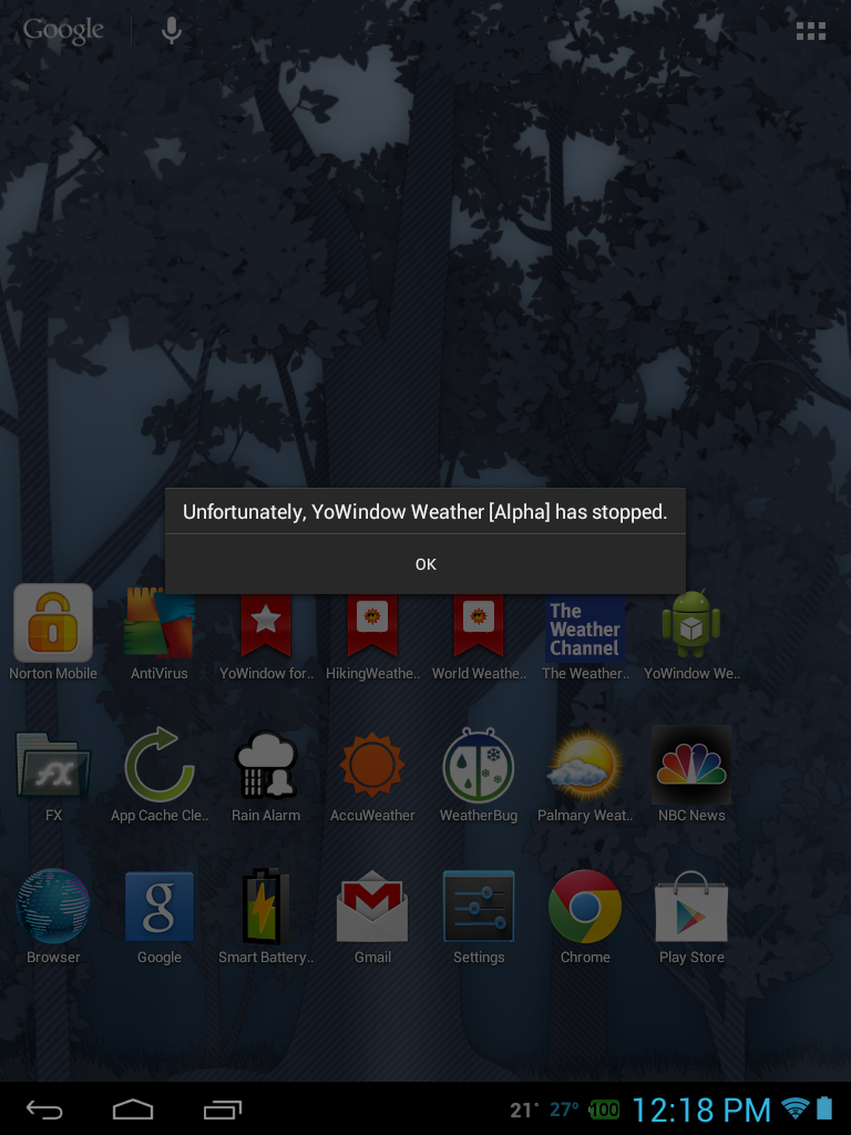 My androids are also crashing after I exit from YoWindow.