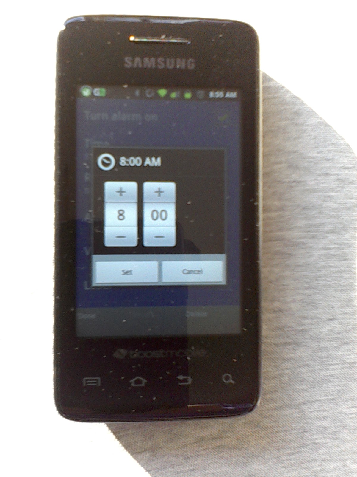 There is a problem with setting the alarm on the 2.3.6 Samsung Prevail.