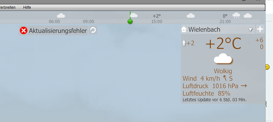 Since updating to the latest version on both of my machines, the weather will not update. Error message reads: x (red circle with a white cross) update error.