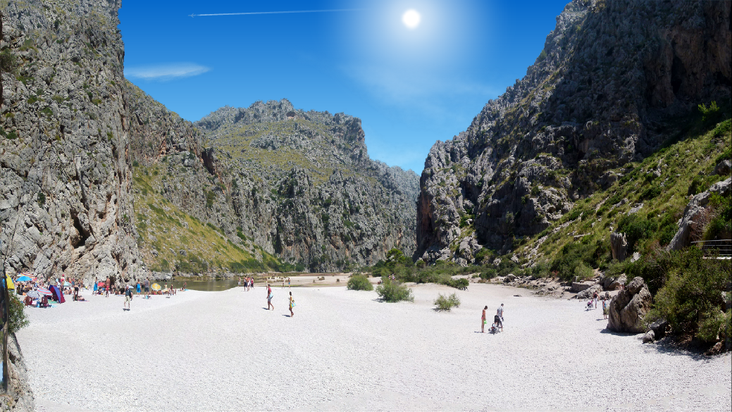 It shows the torrent de pareis on the north coast of Mallorca